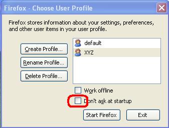 7. Now select the profile you want to open and click on ‘start firefox’. Uncheck the checkbox as shown in the above figure so that you can select the profile at the time of starting the firefox.