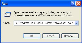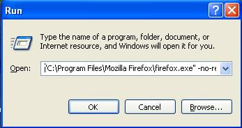 2. Type “C:Program FilesMozilla Firefoxfirefox.exe” -no-remote -p