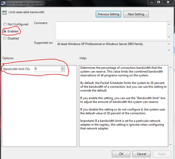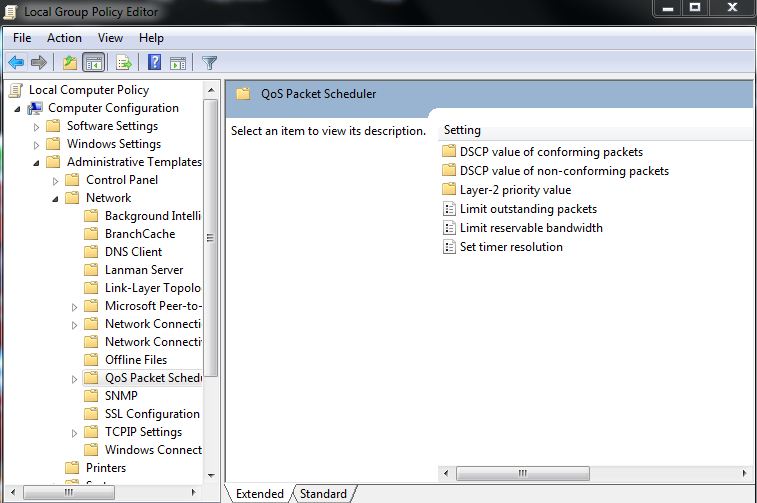 In “QoS Packet Scheduler” double click on “Limit reservable bandwitdh“.